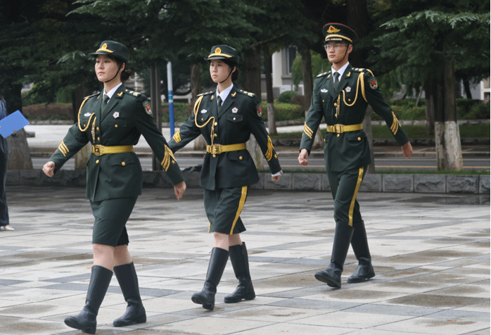 国旗护卫队队员身着笔挺礼服,肩挎金色绶带,迈着铿锵有力的正步从队列中走出。他们身姿挺拔如松,目光坚毅如炬,护着鲜艳的五星红旗走向旗杆。当《义勇军进行曲》奏响,升旗手振臂一挥,国旗如火焰般展开,在晨风中冉冉升起。全体师生庄严肃立,行注目礼,国旗护卫队每一个动作都精准规范,与朝阳、国歌共同构成庄严的爱国图景。