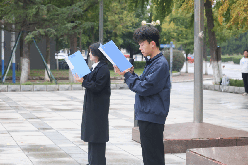 贾艺芳老师和建艺学院团委书记孙誉老师共赴音乐喷泉广场参加“晨光映初心 航天筑梦行”主题升旗仪式。此次活动由两院宣传部联合承办,以航天历史为脉络、以青年担当为内核,旨在通过沉浸式仪式教育激发师生民族自豪感,将航天精神转化为奋进新征程的实践动力。