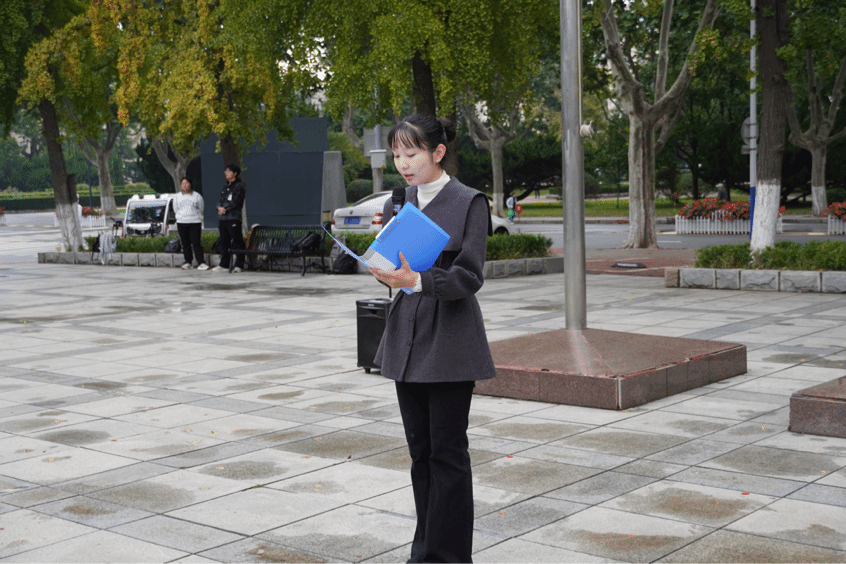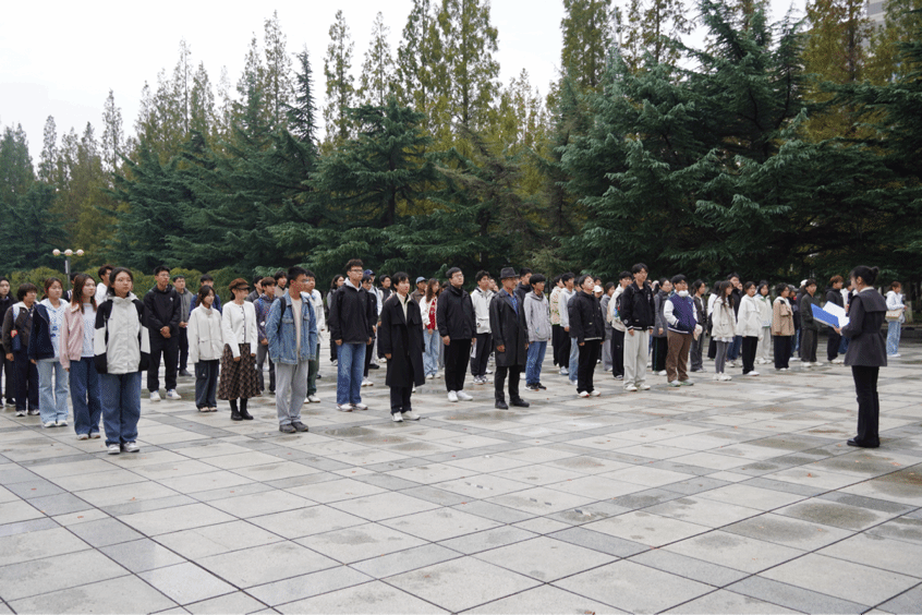贾艺芳老师进行国旗下讲话,围绕“晨光映初心 航天筑梦行”主题,讲述2003年神舟五号发射的历史意义,阐释中国航天从跟跑到并跑的奋斗历程,号召同学们传承航天精神,夯实专业本领,在科技创新中勇担青年责任,为航天强国建设贡献青春力量。